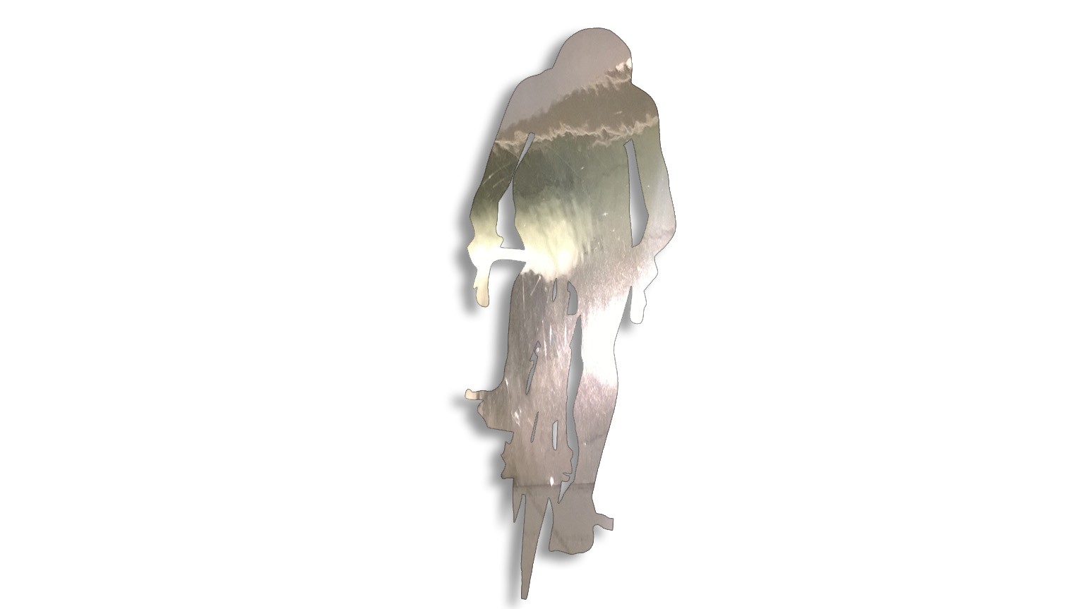 Podkręć estetykę swojego otoczenia dzięki chromowanej edycji naklejki z kolarzem szosowym. Ten unikalny wzór, ujęty w dynamicznej pozycji od frontu, zyskuje zupełnie nowy wymiar dzięki zastosowaniu folii o efekcie lustra. Naklejka lśni i odbija światło niczym polerowane srebro lub złoto, tworząc na powierzchni efektowny, metaliczny emblemat.